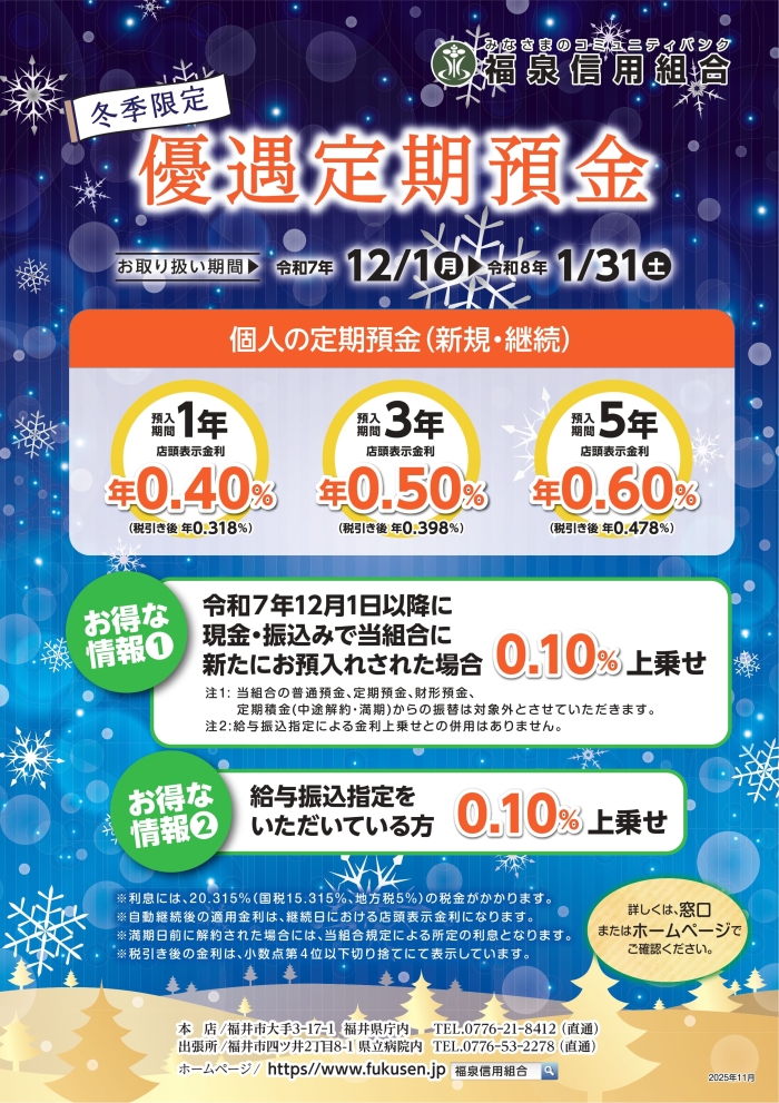 2025年12月1日(月)より「冬季限定優遇定期預金」発売!