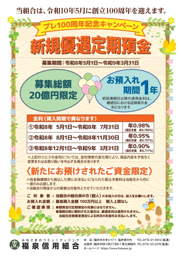2026年5月1日(金)より「新規優遇定期預金」発売!